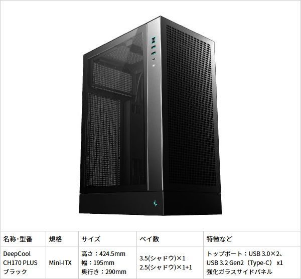 23.6L容量のコンパクトなデザインの中に最大 165 mmまでの高さのCPUクーラー、GPUは最長 415 mm大型モデルにまで対応可能。