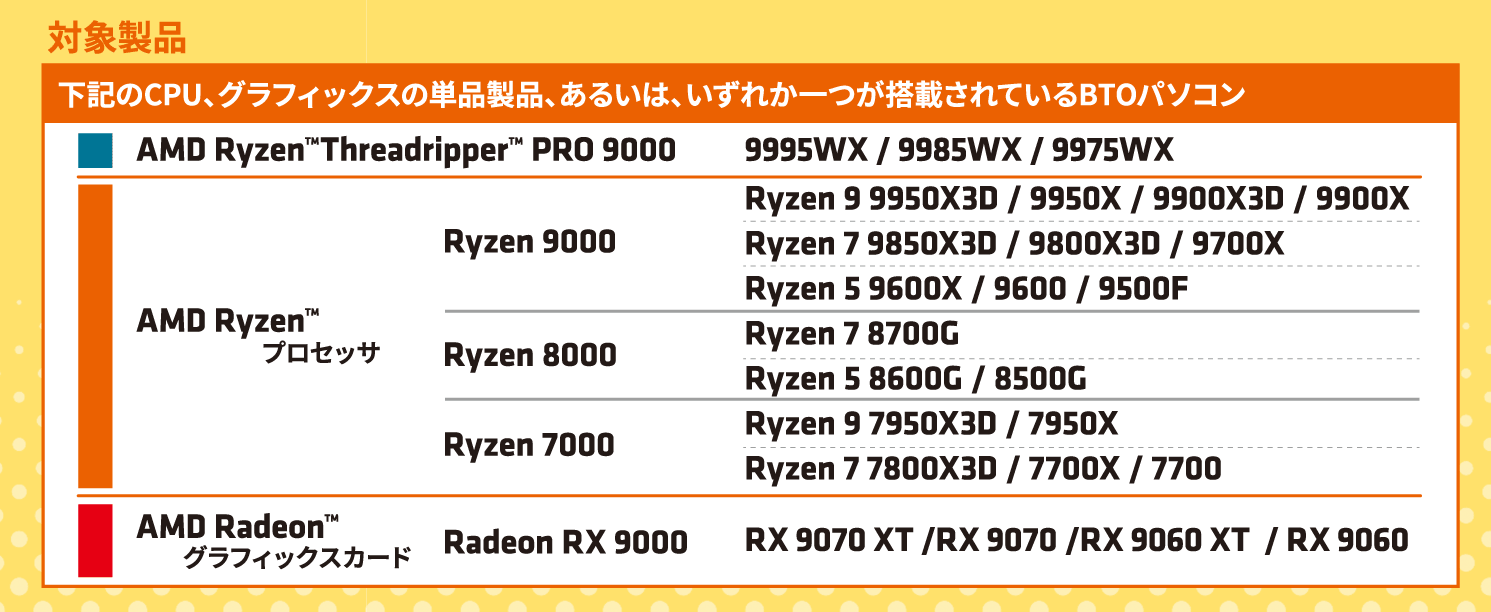 期間中に対象のAMD 製品搭載のBTOパソコンをご購入いただき、