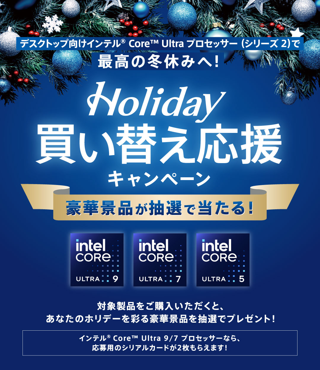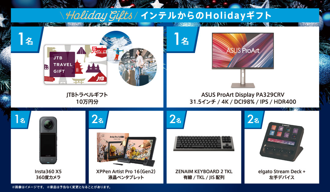 さらに、Xへ「#インテルホリデーキャンペーン」をつけて購入商品の画像とともに投稿いただくと当選確率アップ!!
